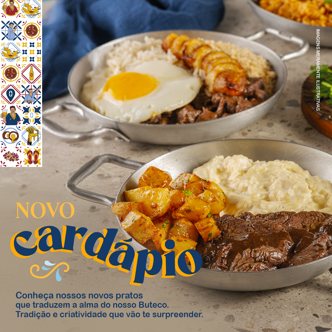 Novo cardápio baseado na arte de butecar carioca: sabores de boteco raiz, cuidadosamente elaborados para relembrar os pratos mais clássicos, com nosso charme, criações exclusivas e receitas de família. Venha brindar a tradição butequeira do Rio!